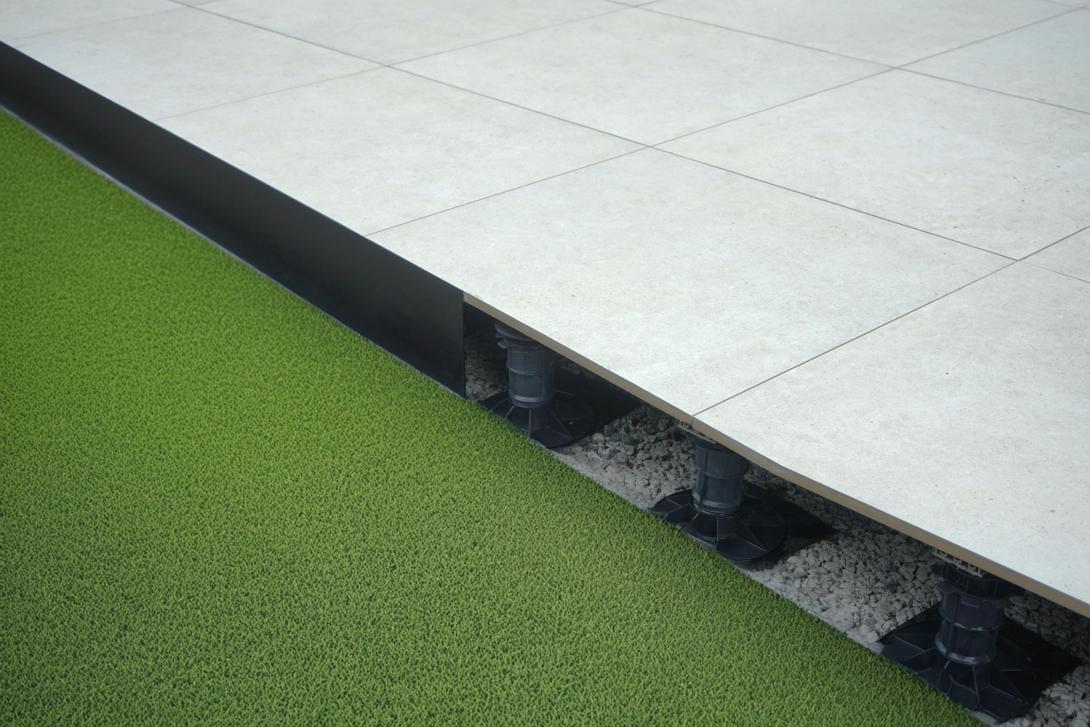 - Losliggend op tegeldragers: biedt snelle afwatering, is vlot toegankelijk voor onderhoud en verzekert een eenvoudige uitlijning; bijzonder geschikt voor dakterrassen en verhoogde terrassen.